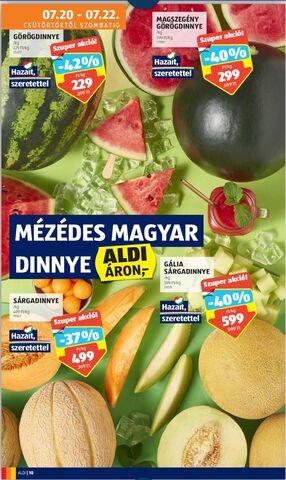 Az Aldiban is 229Ft lesz a dinnye Július 20-tól.