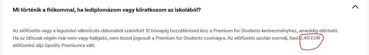 Van itt olyan, aki "Premium for Students" előfizetést használ(t) és lejárt már az egy év? Nem vagyok már jogosult, nemsokára le is telik a 12 hónap. Ilyenkor automatikusan átvált normálra és havi 5€-t fog vonni? Kicsit össze vagyok zavarodva, mert pl itt azt írják, hogy utána is 2,5€ lesz...