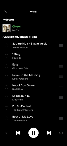 Olyan problémám van, hogy vannak műsorlistáim. Most ha az egyikből elkezdek lejátszani egy számot, ahogy vége , kilép a műsorlistából és random elkezd nekem egy olyan zenét játszani , ami nincs is meg nekem. Ekkor rányomok a lejátszóra azt látom Műsor és itt bent vannak különböző számok és ezeket játsza egymás után. Hiába próbálok itt a jobb oldalon lévő pöttyökre nyomni és kitörölni nem lehet...