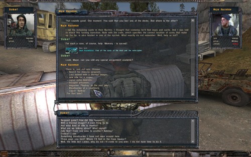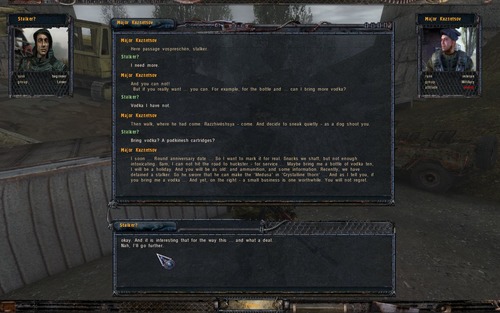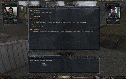 És nem csak ezekkel a feladatokkal van baj. Kuznetsovtól kapok egy ajándék rejtekhelyet, amit meg kellene találnom még a játék elején. Azóta is keresem a megadott helyeken, de sehol sincs. Mole PDA-ja is túl van bonyolítva, amit Agropromban az alagútban kell megtalálni. Amikor felvettem a PDA-t, megjelent egy csapat katona és követelték, hogy adjam át. Végül megegyeztem a tiszttel, hogy odaadom, ő lemásolja és hátra hagyja egy katonánál, akinek én viszek majd 10 Vodkát (minő meglepetés