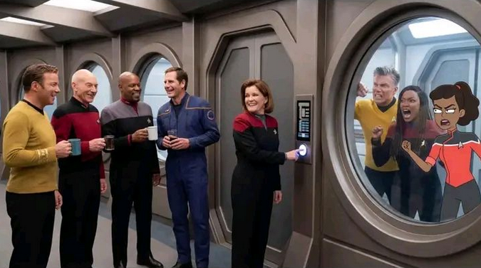 (az a sztori, hogy Stewie épít egy transporter-t és a forgatásról elrabolja TNG legénységet, valami működő fézerfegyverrel karakterbe kényszerítve őket. Zseniális)Amúgy a Kelvin idővonalat részemről elföldelték a Lower Decks végével, ahol bemutatkozott az alternatív dimenzió lehetősége.