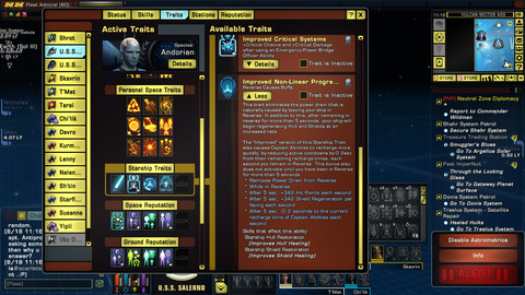 Tehát, a tűzerőt előre összpontosító, gyorsan tolató hajóval, harc közben gyógyulva és cd-csökkentve lehet ügyködni... (5 másodpercnyi tolatás után, folyamatosan élnek a extrák, amíg tolatsz - de, önmagában nem túl jelenős pluszokat adva, kivéve talán a cd-csökkentést, de azt meg mással is lehet pótolni (15 sec tolatás 2-3 sec cd-csökkentést ad))