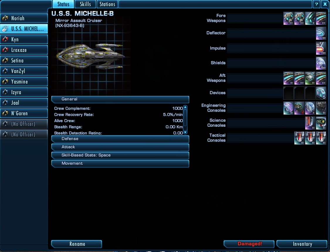 Na ez az: alig bírja jobban a lövéseket a tank Negh'Var-om, mint mondjuk a két tactical team-es, energy siphon-os, borg szettes (plusz MACO pajzs) Armitage-om. Persze lehet velem van a gond, sőt ,tuti