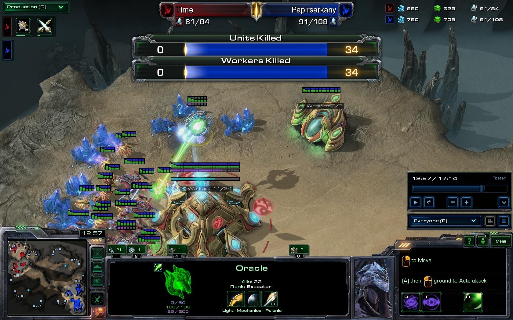 illetve legközelebb figyel oda a probeokra, gyakorlatilag 8:30-nál elveszthetted volna egyből az összeset, csak szerencsédre nem úgy robbantottak a widowmine-ok, ráadásul 3-4 szer bekaptad a wm sebzéseket, és nem foglalkoztál velük. ilyenkor le kell dobni egy robót gyorsan, és kihozni az obszervereket. vagy stargate oracle,szerk. ha meg arra gondoltál hogy a halucinált főnixek miért nem sebeztek, hát azért mert azok halucináltak, látszólag lőnek, de csak figyelem elterelésre jók ( meg derítésre )