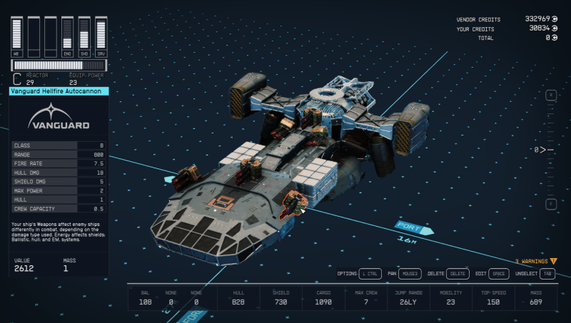 Annyival kiegészíteném, hogy érdemes figyelni a teljes tömeg/érték arányt is. (StarUI esetén könnyű, Stack fült kell bekapcsolni). Nagyon nem mindegy, hogy felveszel-e egy több ezer credit értékű, marha nehéz űrruhát, vagy egy fele annyit érő, tized akkora tömegű pisztolyt.