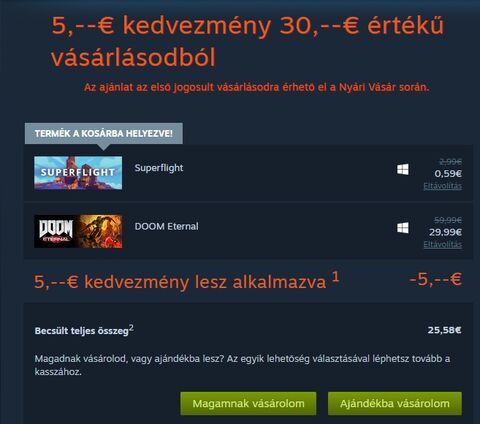 30 eurotol jár az 5 euro kedvezmény a doom eternal ára meg 29.99... Köszi