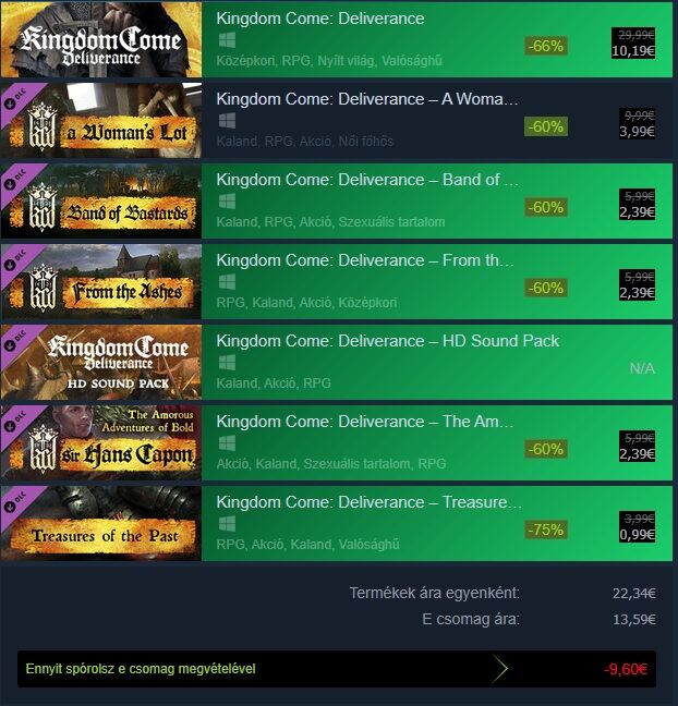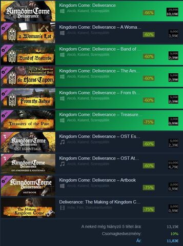 Akiknek már megvan az alapjáték, megnéznék, hogy ennél a 2 csomagnál levonja-e az alapjáték árát (plusz esetleges meglévő dlc-k) a végső árból? Köszönöm!Kingdom Come: Deliverance Royal Edition