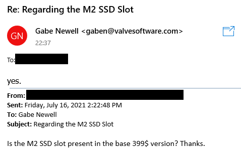 Érdemesebb a 256GB-os modell-t venni, egyrészt több a tárhely, másrészt a jövőben te magad is tudod majd bővíteni.Was wondering if the Steam Deck will have a replaceable SSD - so I mailed Gabe: yes it will