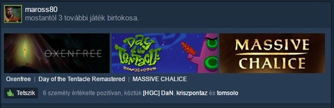 Srácok, a Steam most már a kulcs aktiválásokat is mutatja? Mintha a mostani Humble csomagból aktivált játékokat is felsorolná az aktivitások alatt, vagy rosszul látom és mindenki a Steamről vette meg (pl.: Grim Fandango Remastered, Day Of The Tentacle Remastered)? (Eddig csak a Steam vásárlásokat, ajándék beváltásokat mutatta).