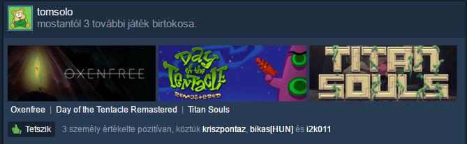 Egy ideje távol voltam a steam-től (és a pc-től is...).