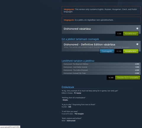 Lehetne picit paktálni a kiadókkal is esetleg, hogy kedvezőbb áron adják mint a Steam és a többi platform (cserébe pl ország aktivációs korláttal, ami szerintem könnyen megoldható Steam-en, van rá példa).Persze nagy nehezen végre eljutott ide is a muve... szóval aki kimarad mostmár lemarad.