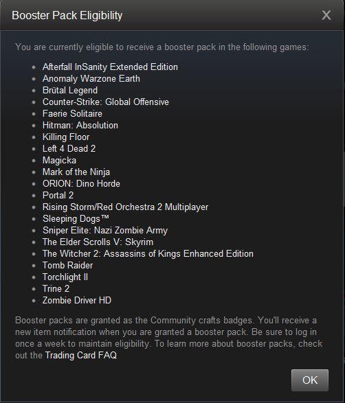 Elolvastam, de személy szerint továbbra sem tudom, hogy ha egyszer kifarmolt már minden kártyát, miért nem kaphat utána booster pack-ot. Elvileg és leírás alapján is ott kéne lennie a listában (amiről teszem hozzá egy betű nincs a leírásban), de gyakorlatban nincs ott neki.