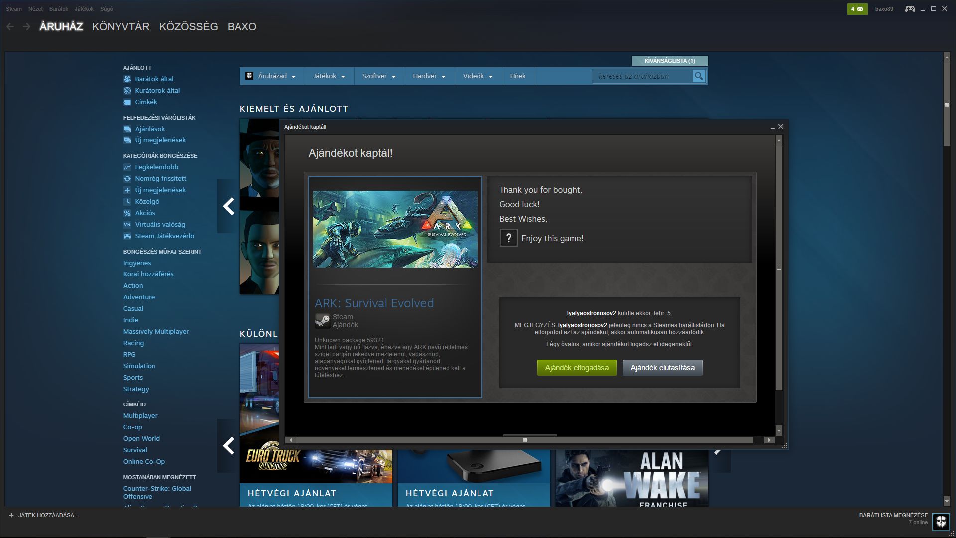 Azt lenne jó tudni, ha elutasítom a fiókomban az ajándékot, hogy akkor is ezt fogja-e írni a steam, ha újra rákattintok a linkre. Most lehet azt érzékeli, hogy "váró listán van" a játék. Csak nem merek rányomni, hogy elutasít.. Szerintetek?
