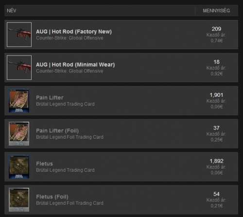 óránként több ezer fogy egy-egy kártyából. ha valami a 100. oldalon van egyen áron, még az is elkel pár órán belül (ha közben nem csökkennek az árak egy szintet. azaz nem lesz az első 10+ oldal olcsóbb, mint a továbbiak)