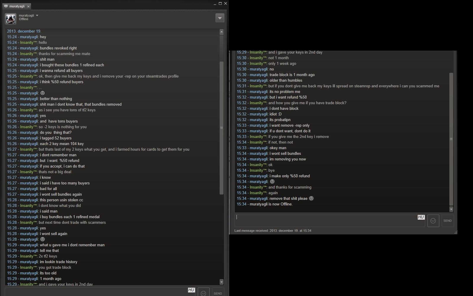 Innentől kezdve én sem veszek bundle cuccokat soha többet. Csak olyasmit amit trade ablakon keresztül lehet cserélni ami vagy item vagy gift. És mint látható a magas +rep sem garancia már semmire sem.