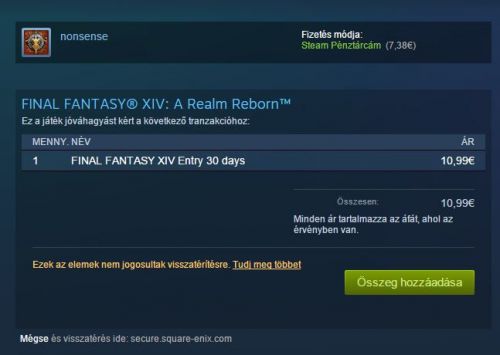 2-3 hónapja vígan tudtam Steames pénztárcán keresztül tölteni a Final Fantasy XIV havidíját úgy, hogy cuccok eladásából jött 2-3 eur, aztán fizetéskor cent pontosan emelt le a számlámról pluszban. -