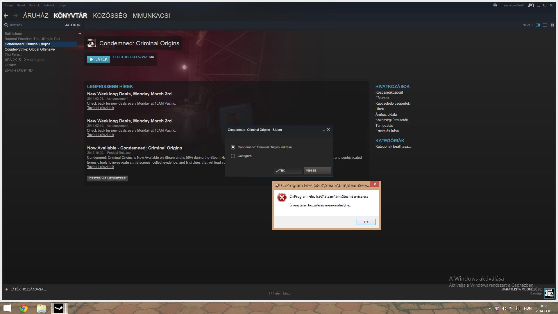 Tegnap megvettem a Bulletstorm című játékot Steamen, lévén hogy igen jó ára volt (20 euróról volt leárazva 5-re). A játékot miután letöltöttem a gépre és feltette a Steam a szükséges frissitíseket, hiába akarom elindiítani, kidob egy olyan hibaüzenettel, hogy "A Bulletstorm működése leállt". Fontosnak tartom még megjegyezni, hogy a telepítés során kompatibilitási problémára hivatkozott a Games for Windows Live, de aztán folytatódott a telepítés.