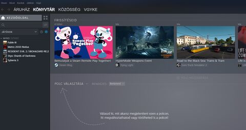 Egyik PC-n a kliens felületét annyira elbabráltam, hogy nem jelennek meg a vásárolt játékok kb így néz ki:
