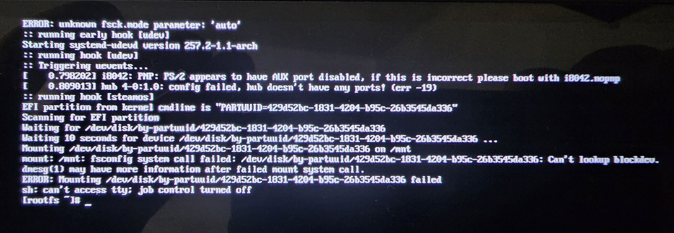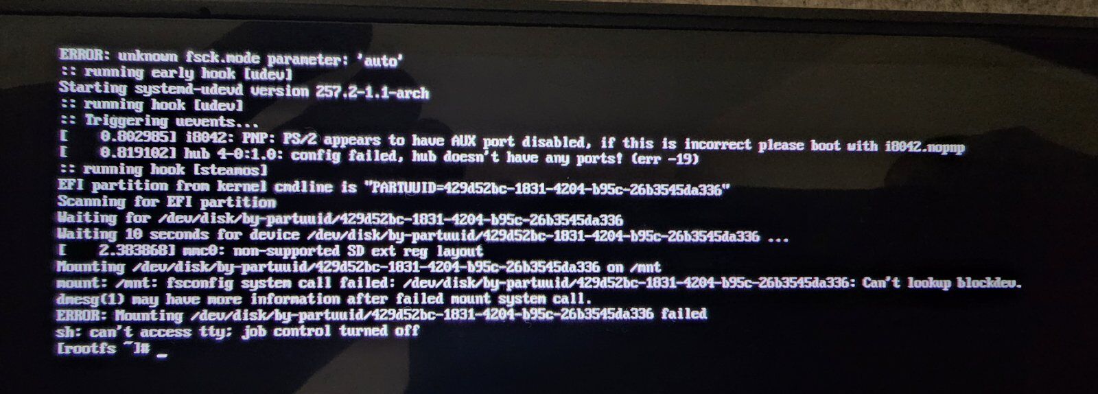 Sziasztok, van egy oled SD-m amit kb 1 hétig nem használtam. Van rajta külön partíción egy win11 és egy SteamOS. Na most a SteamOS az meghasalt valamiért. Nem telepítettem semmit, nem állítottam erre bootnál ezt írja: