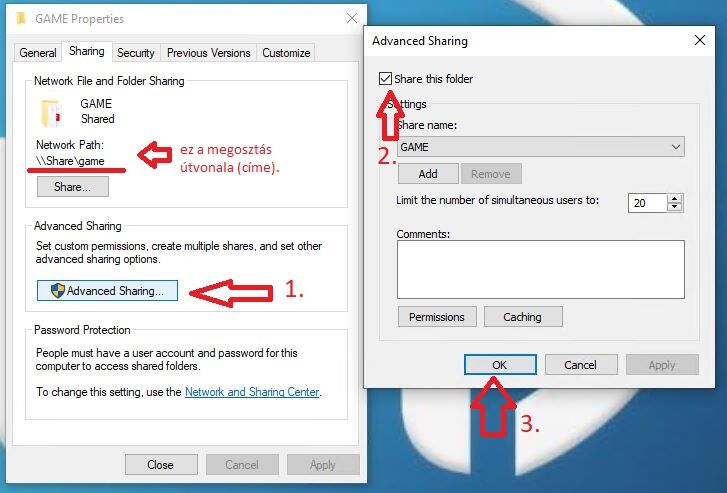 Mappát ossz csak meg, és ne a gyökérből! A megosztást végző gépnek legyen jelszava!