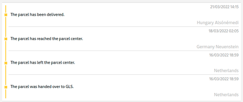 Viszont eszembe jutott, hogy mikor az elsőt küldték, akkor a GLS tracking jól megviccelt. 1 napot állt Nürnbergben, már kezdtem idegeskedni, mikor egyszer csak csöngetett a GLS...