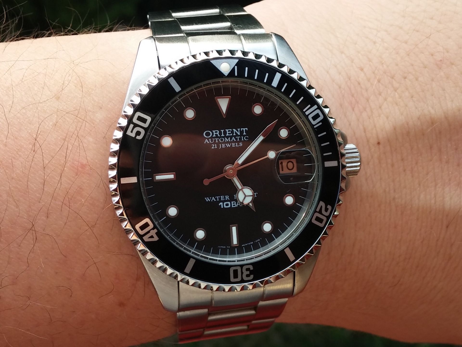 De hogy néhány észrevételt is írjak azoknak, akik még nem láttak élőben OVM-et; azt eddig is tudtam, hogy a Milsub mivolta miatt egy funkcionális óra, de így még közelebbről nagyon tetszenek a részletei. A lünetta beosztása, a domború üveg, a hosszú másodperc mutató, a reggelig világító lume, a dátum hiánya, mind azt juttatja eszembe, hogy ezek eredetileg a katonai felhasználásra lettek kitalálva. Zseniális!
