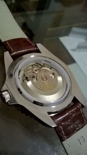 A tok stimmel, megszólalásig úgy néz ki, mint az eredeti. A számlap rendben, csak a feliratoknál vehető észre eltérés: nagyítóval nézve összefolynak a betűk, a "Skydiver" felirat vastagabb kicsit és nem egyezik az "r" betű kifutása a végén. A szerkezetet egy műanyag gyűrű fogja körbe, ami az eredetiben fém. A legérdekesebb a szerkezet: eredeti ETA a kopások alapján a 80-es évekből. A rotoron az Edox jel és a feliratok is eredetiek. Azaz egy régi svájci ETA, Edox gyári szerkezetet épített bele valaki. Kamu az egész, de képekről bőven bele lehetett esni.