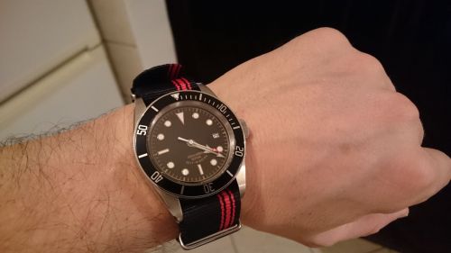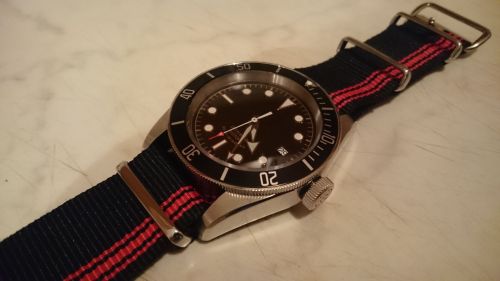 Kicsit jobban megnéztem az ötletadó Black Bay-t,3 ezer pár száz dollár az ára,használtan 2-ért már van.Ugye ezért egy 2824 es ETA van benne módosítva,ebben,szintén ez a szerkezet van alap verzióban,töredék áron.Ugye az eredetin nincs dátum,de nekem kell,tehát ez is jó,és nekem a snowflake mutató annyira nemgyerebe,ezért ennek a módosításnak is örülök.Zafír és minden más rendben,lumenje nem túl erős,kicsit a lünetta laza,a bőrszíj nagyon jó,csak nekem kell a több sportosság,ezért kapta a natót.Tegnap fél 4 óta volt este 11-ig a kezemen,éjszaka pihent,most 4 mp-t késik.Szóval ez is jó!
