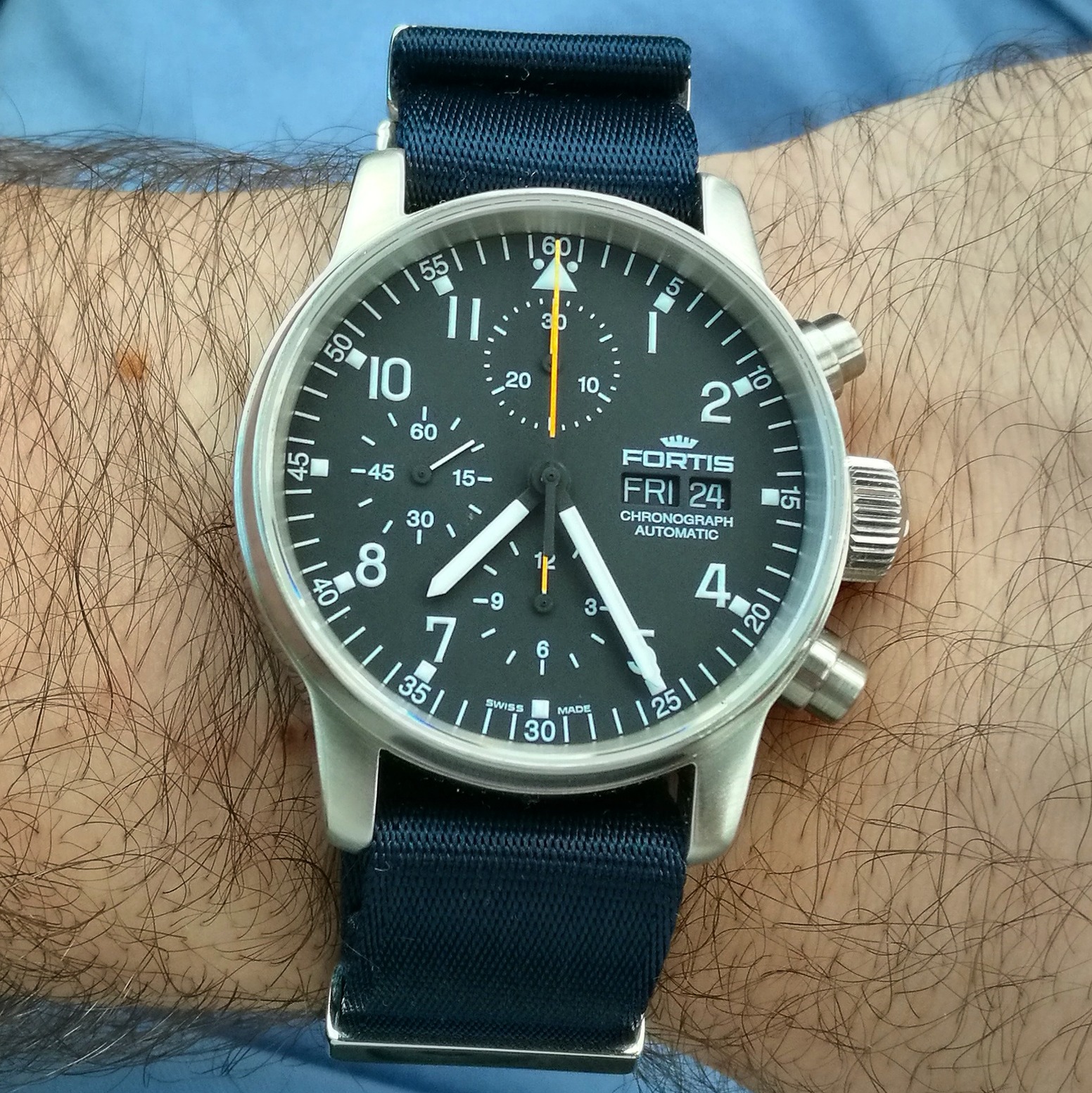 Köszi. Igen. Tok titán ,hátlap és korona acél. Kellene keresnem hozzá valami rongyos hatású szövet szíjat. Szerintem az passzolna hozzá főleg akkor ha megindul a patina. Bőr ebben az időben elég kényelmetlen.