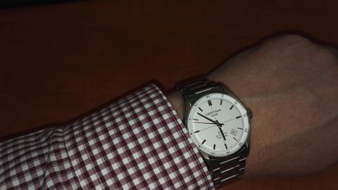 Ezt szeretem az ilyen krumplikban, hogy hiába nagy az óra, kényelmesen hordható a tok okos kialakítása miatt.