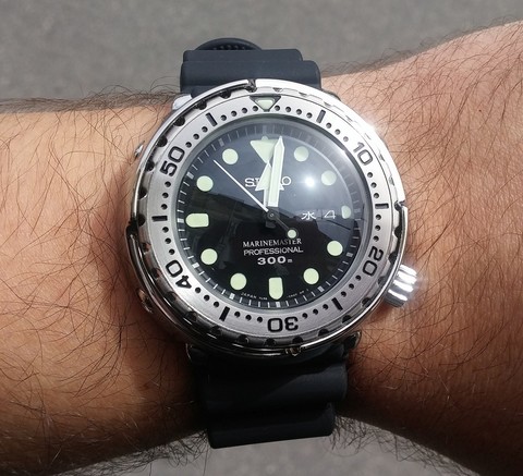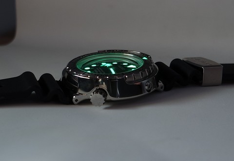 Ezzel a konkrét modellel korábban elég vegyes érzéseim voltak, a nyers fém lünetta nagyon tetszett, de a tükörpolíros védőgyűrű elég elbaltázott ötletnek tűnt, nem hittem hogy ez a csillogó izé jól mutat a masszív búváron. Pedig bizony!gipsztigris: nem ismertem ezt a fajta szíjat, nagyon ötletes. A kivitelezés pedig a megszokott M1ó, ilyenkor mindig elkezd kicsit kattogni a fejem, hogy kellene valami órát nézni hozzá...