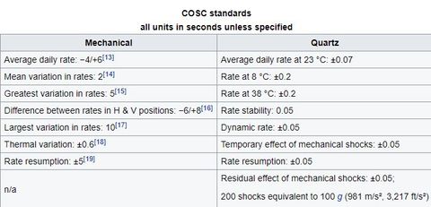 while the Top grade is adjusted in five positions with an average rate of +/−4 seconds/day, with a maximum daily variation of +/−15 seconds."