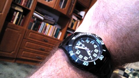Nemrég viszont újból elővettem, és szomorúan vettem észre, hogy a friss elemcsere ellenére késik vagy elromlott (?) a quartz szerkezete. Az alábbiakat produkálta az óra: fél nap alatt 15 perc késés, utána 2 napig pontos, aztán megáll, utána néhány napig megint pontosan jár...
