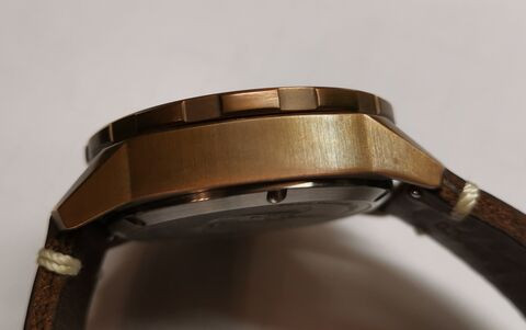 A tiéd körül látszik a bronz. Ez jó megoldás. Nagyon szép óra! -