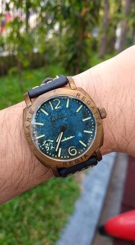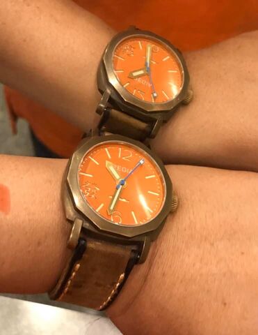 Szerencse, hogy úgysincs belőle zöld számlapos. Szerintem a bronzhoz a zöld megy legjobban, de az a barna sem rossz és a kék is jól néz ki...