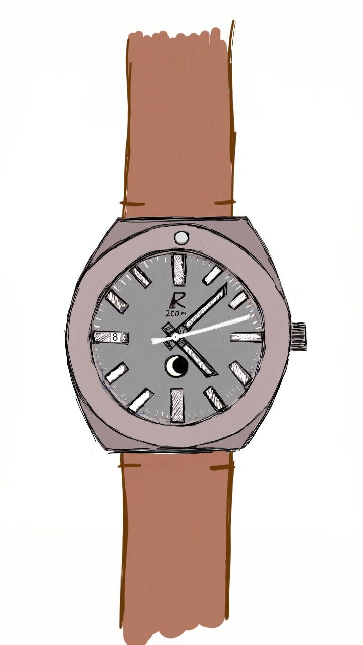 Ez még egy nagyon kezdetleges vázlat, de csináltam egy új mutató készletet hozzá. A dátumablak bal szélre került, alul pedig egy holdfázis mutató kapott helyet.