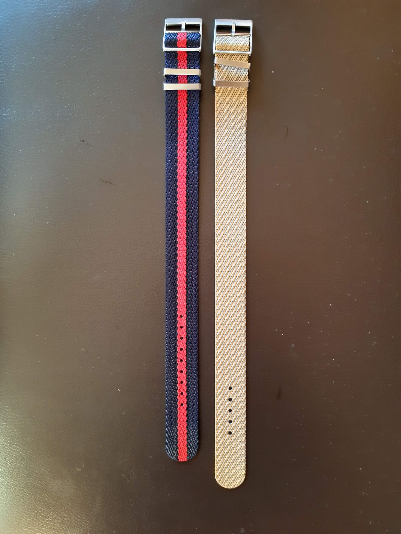 a jobb oldali az, CNS-től, Adjustable Single Pass Strap Barley - 19 mm (a bal oldali is a CNS-től van (SharkTooth Strap Navy and Red - 20 mm),