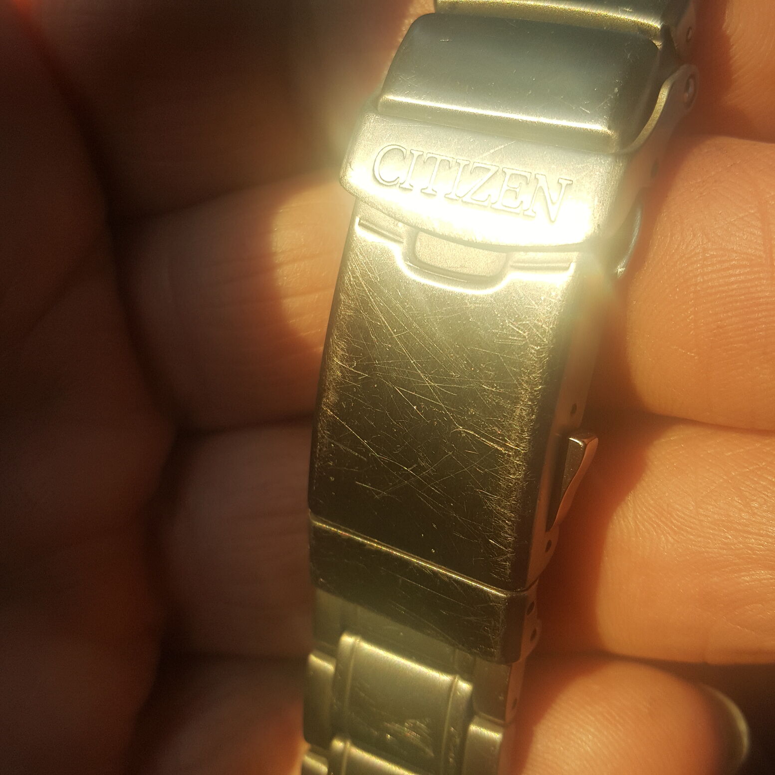 A kapocs linkes - vagy mi a neve - próbáltam behajlított csuklóval kikapcsolni, de nem tudtam, ami jó. Nekem olyan 24 centis a csuklóm, 2 szemet kellett kivenni az ideális mérethez. Szóval vastag kezűek ne vegyék, a kicsik meg vegyék figyelembe hogy tokfül távolság olyan 45mm.A lume szépen világít a sötétben: