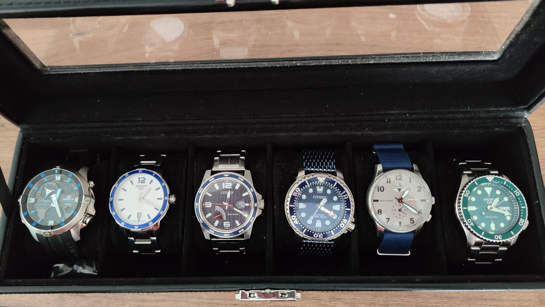 Casio Edifice EMA-100 quartz , Tissot Tsport Quickster quartz , Citizen Promaster BN0151-17l solar , Citizen Eco drive AW7038-04l solar , Junkers Iron Annie Dual Time 5640-4 quartz , Seiko SRPD61K1 automata.