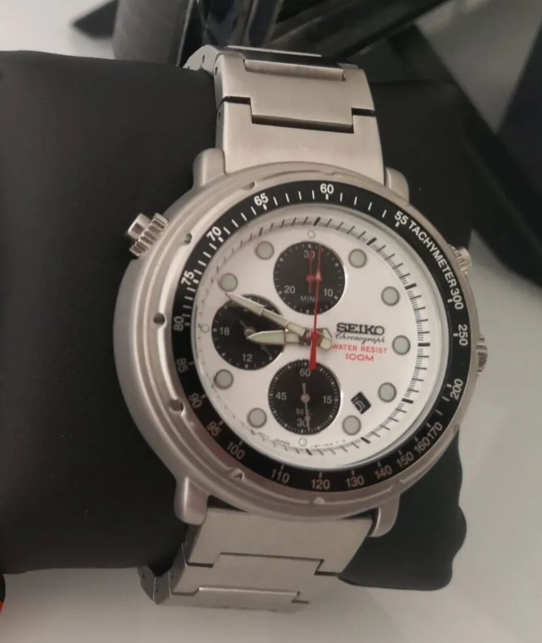 Kicsit gaggyer fémszíj, fix bezel és annak csapnivaló megmunkálása, rakott index semmi, a nagyító ablak is béna, bár ez egyéni problémal, ill. nem kicsi Seiko beütés, low end kivitelben