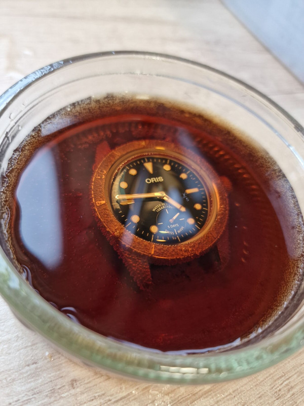 1 nap alatt sötétedett az óra és újra látható volt a lünetta foltossága, de kevésbé erősen mint korábban. Így tegnap délután tettem egy próbát colaval.