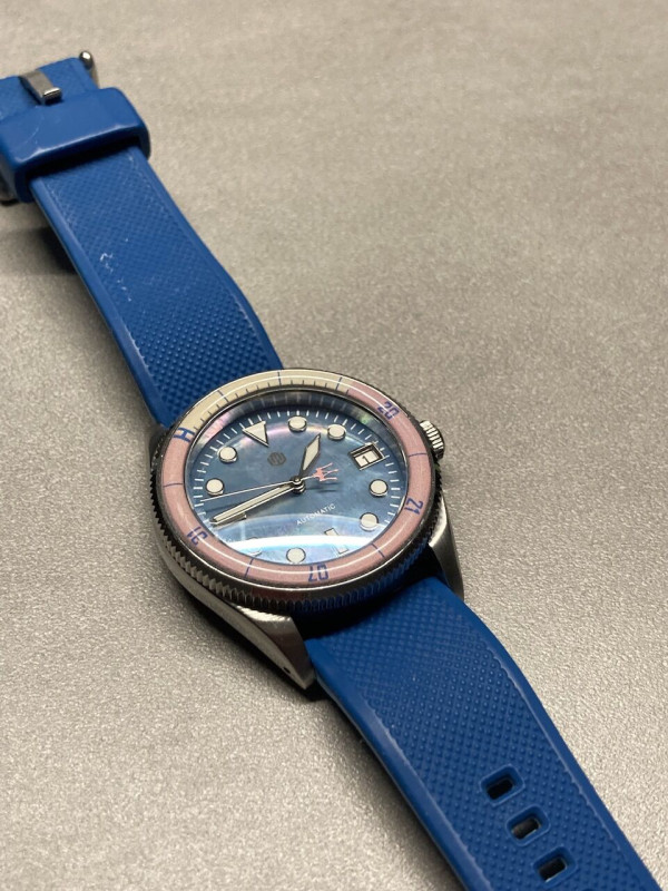 A Breitling a legszebb és legjobb minőségű órám volt mind közül, de a szíjat egyszerűen nem tudtam kompromisszumok nélkül méretre állítani. Talán a Rouleaux merevsége az oka, de egyszerűen nem ment, a fémszíj nélkül meg nem adta vissza ugyanazt az életérzést. Megragadom az alkalmat és megkövetem FLx kollégát, aki korábban már felhívta a figyelmet erre.Nem vadászok nagy halra, inkább egy "pont megfelelő" halra. Éppen a kék Laco flieger, CW Sealander 36 auto és GMT, valamint a 38 mm-es Trident pro 300 van terítéken... Esetleg a Muhle 29er 36,6 mm-es verzió.