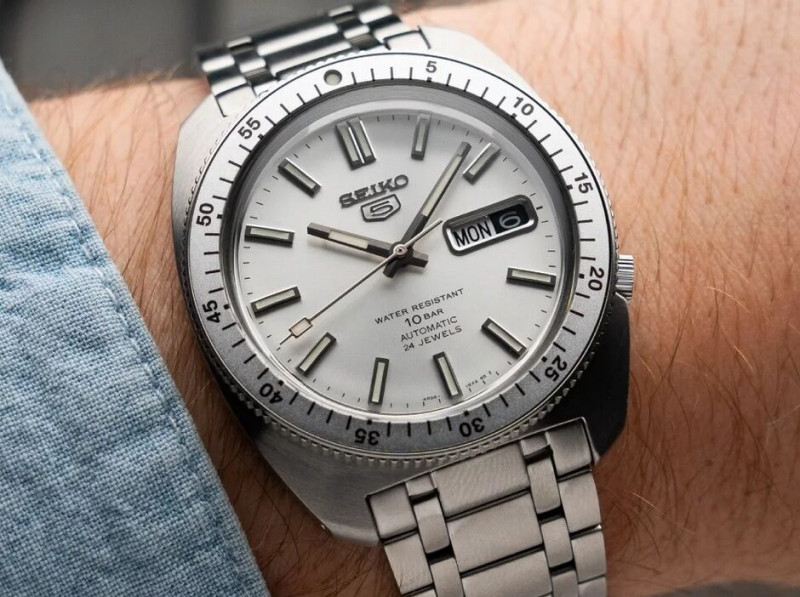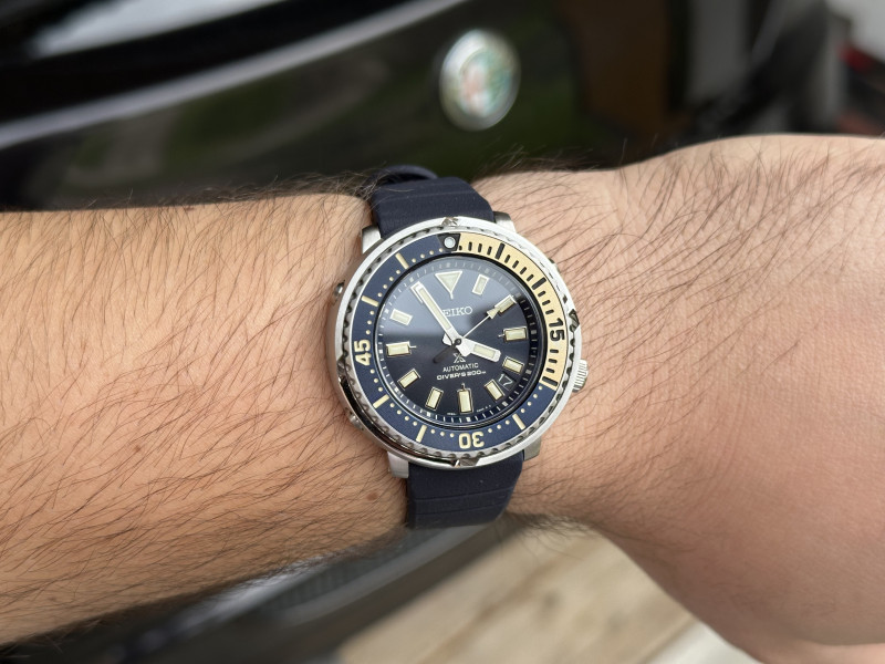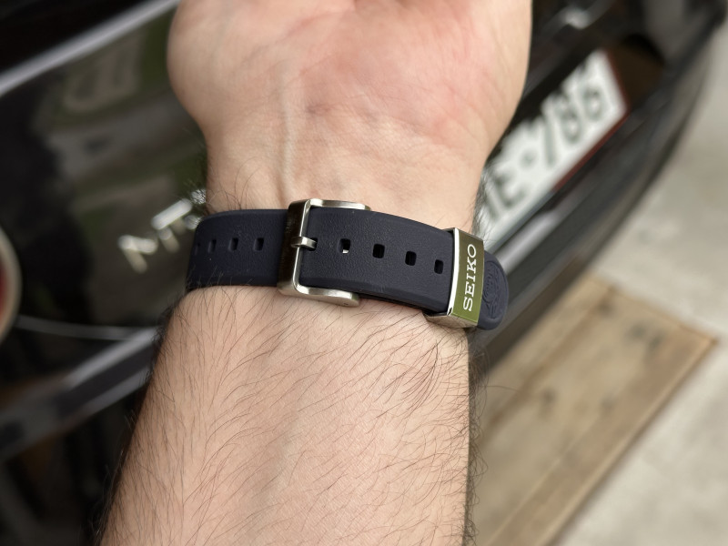 de azért szeretem, ha minőségi fémszíjjal társul egy sportosabb óra, amivel kellemes egységet is képez.+ : Valós képen azért jobb a Seiko 5-nál, nincs akkora kontraszt a szíj és a tok között, de lehetne jobb... meg a rést is kigyomlálhatnák már a végszem és a tökfül között. Azért nem ritka jelenség, itt még a stiftet is látni.