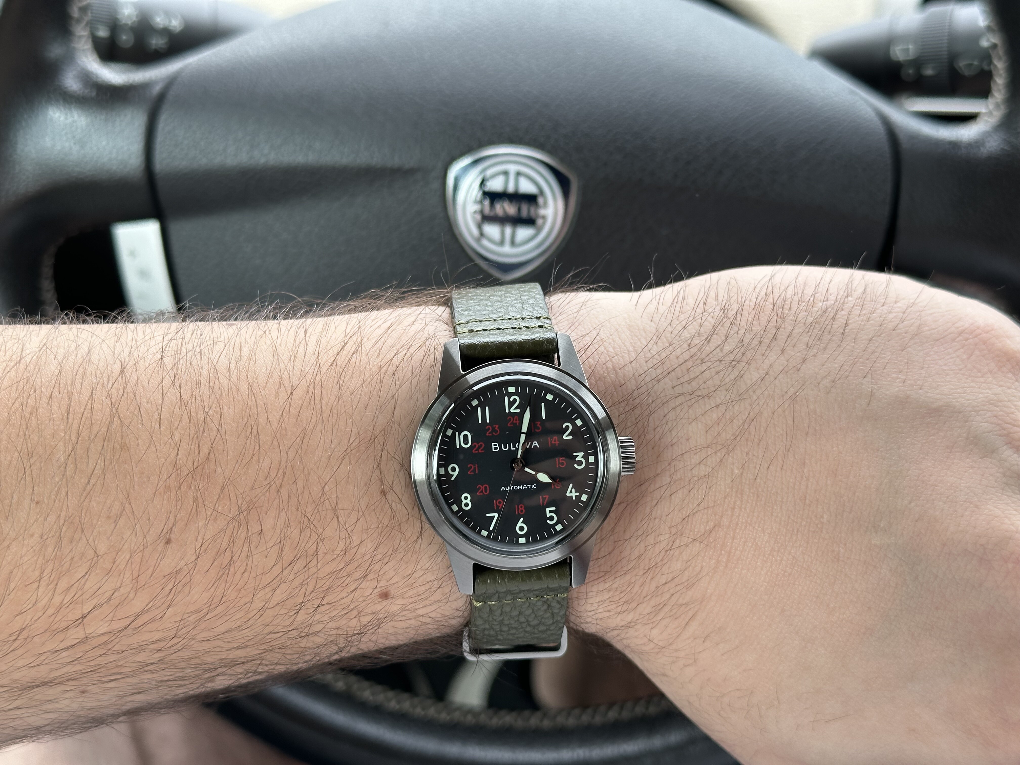 a képen látható óra szíjának csatlakozási ponton mért szélessége 19mm. Tudtok ajánlani valami szíjjat ami szélesebb ennél a szíjnál a további részeken? Tehát tud csatlakozni a 19 mm nél de a további részeken szélesebb. Vagy csináltassak hozzá valami pilóta szíjjat?