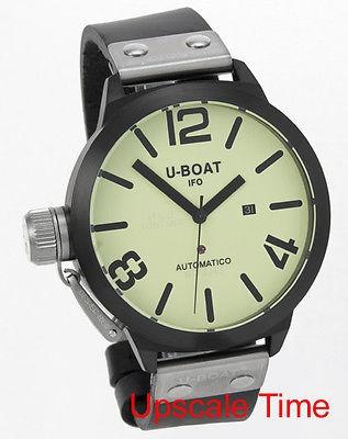 Automatic mechanical chronograph modified and personalized at U-BOAT specifications for date display and stem position at 9 o’clock. Frequency 28.800 vibrations per hour, 4 Hz. Power reserve 44 hours. 25 jewels. Height 7 mm.