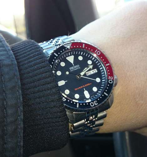 Ezzel életem első órája - egyben első külföldi rendelés is -, nagyon tetszik és megérte a 20 ezret szerintem. Annyira nem nagy, mint gondoltam, nem is az átmérője, hanem a vastagsága zavaró picit, de azért merész volt vakon berendelni 17 centis csuklómra a 45 mm-es órát.