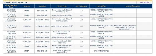 Ha megnézed a posta.hu/tracking oldalon (RM677525641IN) ott azt írja, hogy kézbesítésre továbbítva, aztán meg valamiért elindult visszafelé. Szerintem hívd fel a magyar postát, és érdeklődj a ragszám alapján, h mi van a csomaggal. Nem kaptál értesítést véletlenül, h vámtartalmú csomagod jött?