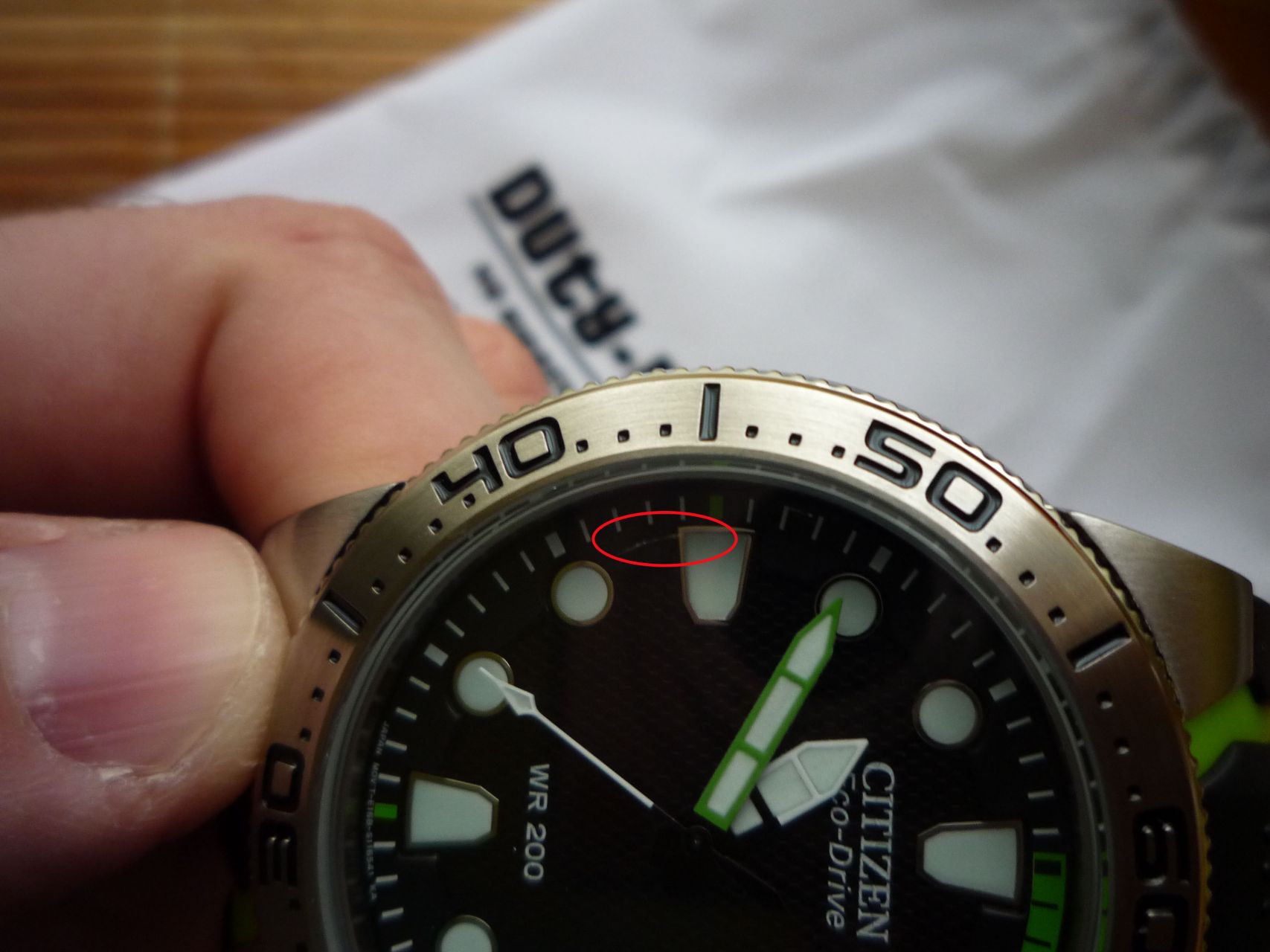 Jó reggelt mindenkinek! Visszaírtak a DFI-től a karcosan érkező üveggel kapcsolatban és nagyon pozitívan álltak a problémámhoz. Két opciót ajánlottak fel. Vagy tartsam meg az órát és kompenzációként visszautalnak 25 dollárt vagy küldjem vissza az órát és küldenek újat vagy a teljes vételárat. Az első opciót választottam, mert az óra nagyon tetszik és az üveget leszámítva tényleg makulátlan. A 25 dollár meg simán fedezi szerintem az üvegcseréjét.