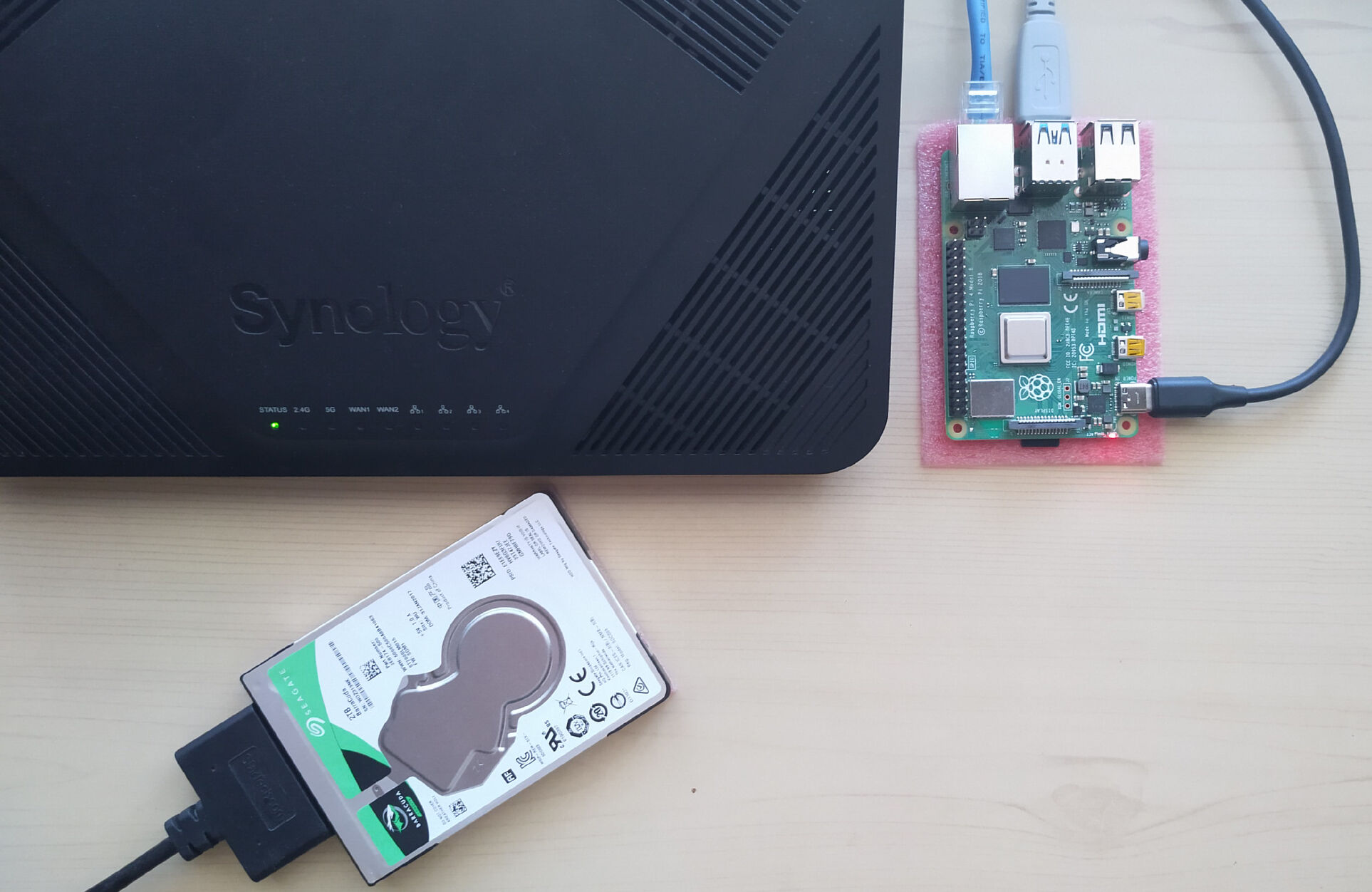 Beszereztem egy 4 GB-os Raspberry Pi 4-et, és úgy tűnik, hogy ez jobban bírja a torrentezést mint az RT2600ac. 200/20 Mbps netem van, és ebből a router olyan 150 Mbps letöltést tudott összehozni, viszont a RPi4 simán kimaxolja. Amúgy egyszerűen csak rákötöttem a router USB portjaira, a 3.0-s táplálja a RPi-t, a 2.0-s pedig egy Y kábel segítségével a vinyót.