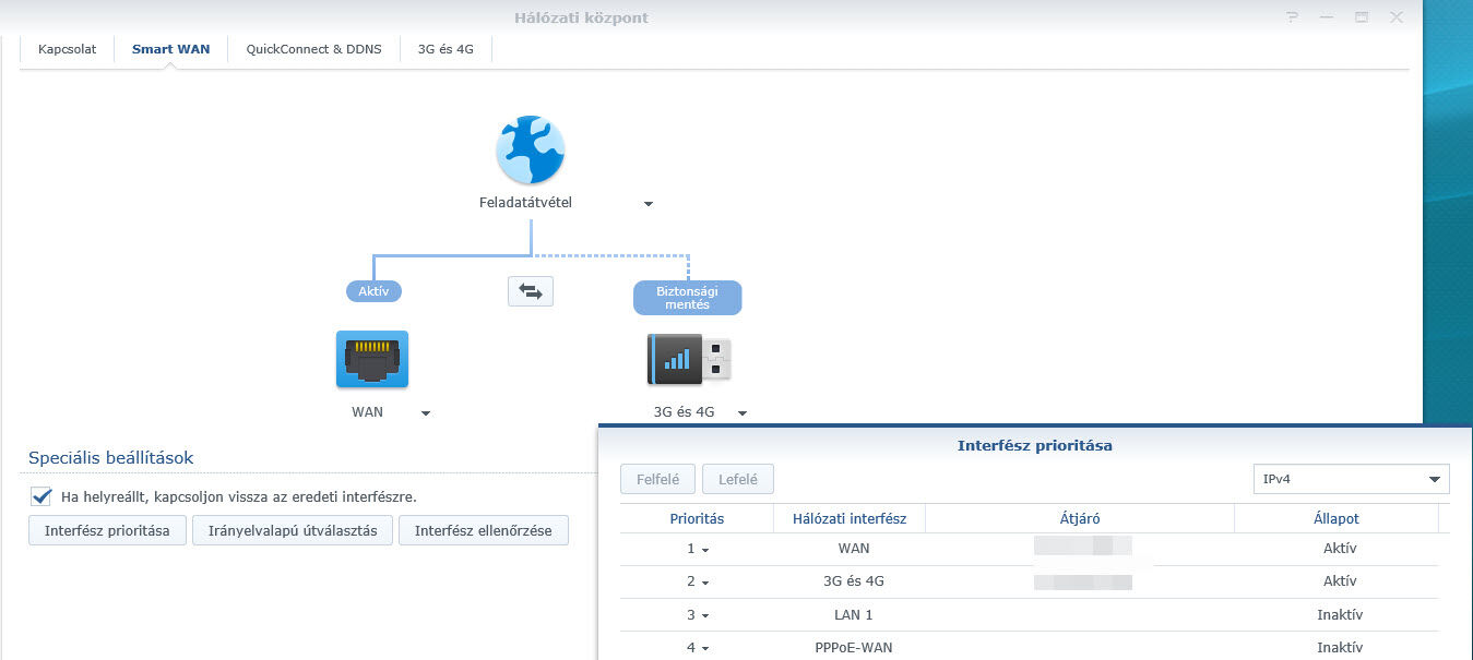 Interfész prioritása gomb itt a PPoE-WAN legfelülre.
